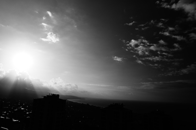 It is an experimental black and white photograph. You can see talismanically sky with sun and clouds. Also, the sea coast is seen in depth. In this photograph, you see black and white blending together. This photograph is proof of how an ordinary moment can take on a completely different atmosphere. It is photograph, it is an experimental art.