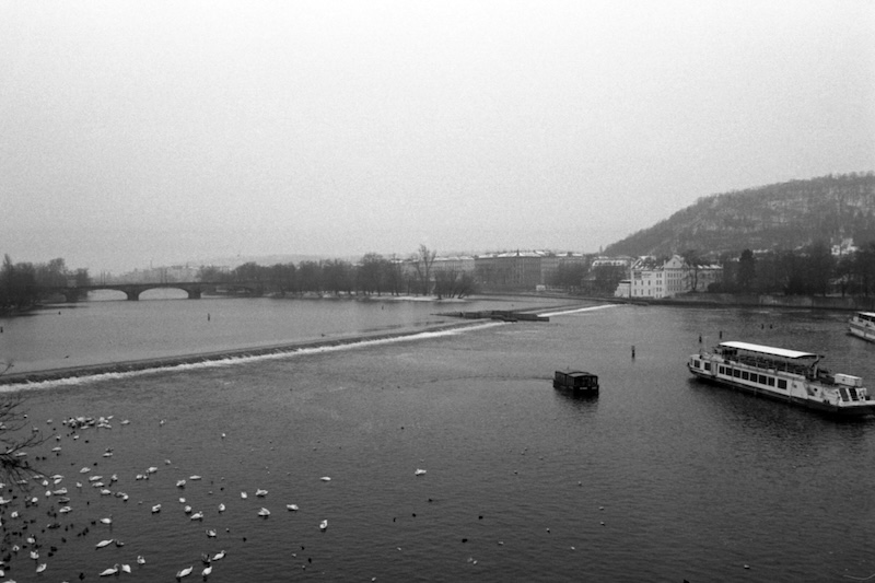 This is the Vltava River in Praha, Czech Republic. All objects are so harmonical in this photograph frame. The ferry on the river and the birds swimming in the water attract attention. The serenity in this photo makes people relax. The Vltava River is one of the calming corners of the cold Prague spirit with all its calmness. In this photography, we aimed to reveal the beauties of the city of Praha. There is no much grain in this photograph and we used to some opportunities of black and white photography.